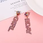 Beaded Glitter BDAY Letter Dangle Earrings – Acrylic Happy Birthday Earrings for Women’s Birthday & Holiday Parties