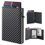 typecase Mens Wallet Card Holder: Pop Up Aluminum Case, Genuine Leather, Smart, RFID Blocking, Slim, Minimalist, Front Pocket – 9-14 Card Capacity | ID Window | Cash Slot (Carbon Fiber)
