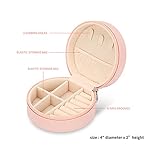 【Small Jewelry Box】 : The travel jewelry case size is 4″ diameter x 2” height, 3 necklace hooks & elastic pendent pouch, 7 ring grooves, 4 adjustable compartments. The zipper closure gives our jewelry travel case a classic and stylish look, easy to open and close while protecting your pieces. Our spacious and compact travel jewelry organizer has room to hold multiple earrings, rings, necklaces, and bracelets yet it’s small enough to fit in your luggage or in your small bag.