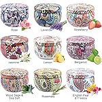 【Long Burn Time】- Upgraded scented candles set in 2.5 oz, more than 20 hours using time. The total burning time of 9 scented candles gift set is about 180 hours. You can also trim the wick to increase the burning time by 10% to help provide aromatherapy and create a beautiful atmosphere.