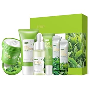 🌿【Green Tea Skin Care Set】This Skin Care Gift Box Set contains your favorite moisturizing necessities: facial cleanser, face serum, face cream, eye cream, facial mask, and mud mask. This skin care kit can replenish dry skin with water, help prevent skin dryness, and moisturize skin.travel skincare set