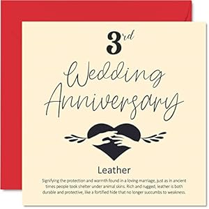 MAKE THEM SMILE WITH THIS HEARTFELT ANNIVERSARY CARD FOR YOUR OTHER HALF: This exceptional quality anniversary card for her or him shows the design ‘3rd Wedding Anniversary’ with a definition of the Leather Anniversary meaning. If you are looking for funny anniversary cards for men, then then this happy anniversary card is bound to make them laugh. Not just for relationship gifts for women this could also be for Husband, Wife, Boyfriend, Girlfriend, Partner or Companion.