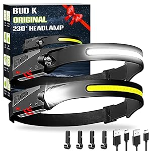 6 Light Modes: Wide beam with COB: strong light and weak light. Side light with XPE: high light and low light. Press and hold for two seconds to strobe (cannot turn on floodlight and spotlight at the same time). Motion Sensor mode. The ultra-bright head lamp adjust the brightness according to your lighting needs.