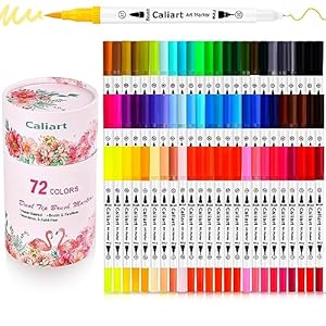 Caliart 72 Colors Double Tip Brush Pens Art Markers, Artist Fine & Brush Pen Coloring Markers for Adult Book Cards Drawing Craft Kit Teacher Office Supplies
