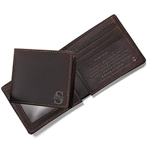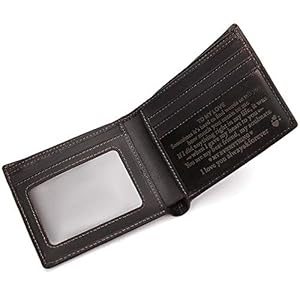 HIGH QUALITY LEATHER: This wallet is using the top quality leather. It has a soft, textured surface and possesses the same flexibility as leather which is old fashion and vintage. The engraved word express your love to your beloved men.