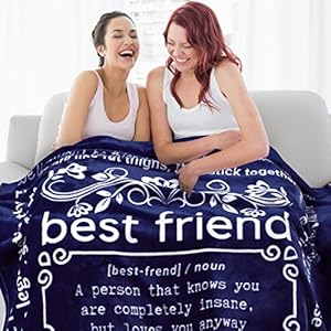 Luxury Combined with Laughter: The Best Friend blanket isn’t a novelty gift! Measuring 50×60 inches and made from plush 320gsm plushfleece. A quality useful friendship gift, covered in funny personalized sayings and words that only you can say to your bestie! You are my favorite b to b about b with, you’re awesome, keep that $%^ up, we’ll always be friends because you know too much, thanks for being my unpaid therapist, friends are like fat thighs they stick together! What a gag!
