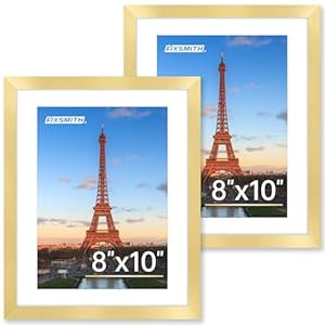 FIXSMITH 8×10 Picture Frame Set of 2, Gold Picture Frames Collage for Tabletop or Wall Display, Photo Frame with HD Plexiglass, Display Pictures 5×7 with Mat or 8×10 Without Mat