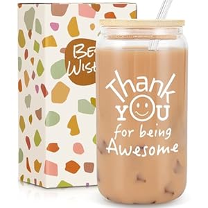 Thank You Gifts for Women Men: This thank you gift can glass will be a heartfelt ways to say thanks for being amazing. Express heartfelt thank you to your coworkers, emplyees, teachers or others with this sweet can glass, she or he will definitely surprised and delighted on receiving this special gift. Give it as a gift for a friend, family member, partner or just in general try these thoughtful and kind ways to say thank you for being awesome.