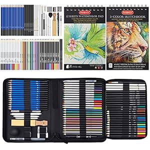 EXTRA DRAWING SKETCHING SUPPLIES KIT : Along with 1 Refillable Water Brush Pen, 1 White Gel Pen, 1 Marker Pen, 1 Vinyl Eraser, 1 Kneaded Eraser, 1 Sandpaper Pencil Pointer, 1 Pencil Extender, 3 Paper Blending Stumps, 1 Travel Case,1 Paintbrush, 2 Sharpener, 1 Rub Sponge.