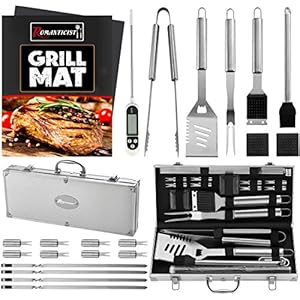 ROMANTICIST 23pcs Must-Have BBQ Grill Accessories Set with Thermometer in Case – Stainless Steel Barbecue Tool Set with 2 Grill Mats for Backyard Outdoor Camping – Father’s Day Best Barbecue Gift