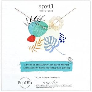 SoulKu Handcrafted Birthstone Necklace, Empowerment Jewelry, Birthday Jewelry For Women, Mom & Sister Gifts, 2″ Extender With Lobster Clasp, 16″ Nylon Cord, (Genuine White Topaz, April)