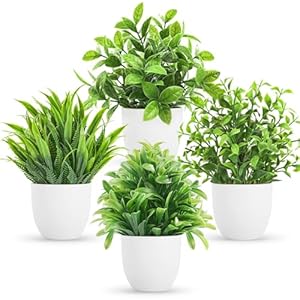 No Need to Assemble: Mini pots with 4 different fake plants, these artificial potted plants come already set in its own galvanized metal pot for easy displaying. A great way to add modern decorative touch and some natural greenery to your living space