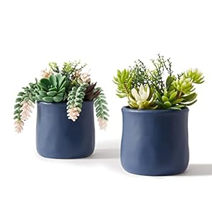 ASTRIDIA Artificial Succulent in Ceramic Pots, 2 Packs Large Faux Fake Plants Navy Blue for Desk,Office, Bedroom, Living Room, Bathroom Office Shelf Home Décor