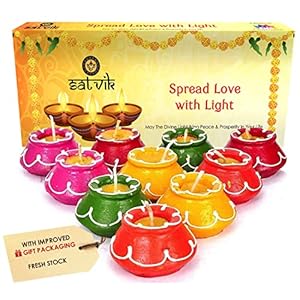SATVIK 10 Pc Set Matki Clay Diya Diwali Wax Filled Dia for Puja Pooja Traditional Handmade Terracotta Earthen Vilakku Oil Lamp Diyas Natural Mitti Welcome Deepawali Decoration Indian Gift Items