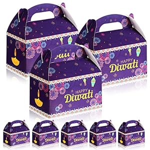 Sabary 24 Pcs Happy Diwali Treat Box Party Favors Diwali Sweets Gift Boxes Indian Festival of Lights Goodie Gable Boxes Decoration for Indian Party Supplies 5.9 x 3 x 3.5 Inch