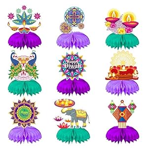 Estivaux 9 PCS Happy Diwali Honeycomb Centerpieces – Deepavali Candle Table Toppers for Home Festival of Lights Party Decor