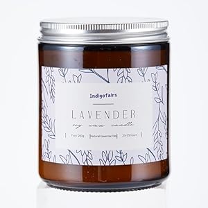 Indigofairs Lavender Scented Candle – 7oz Soy Wax Aromatherapy Candle for Stress Relief & Relaxation â 40 Hours Long Lasting, Natural Essential Oils, Gift for Women & Home Decor