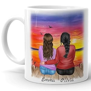 4GIFTSAKE Customized Mom Daughter Mug – Ceramic Coffee/Tea Cup – Present for Mother’s Day, Birthday, Women’s Day – Personalized Avatars & Quotes – Memorable Gift Idea