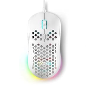 DIERYA M1SE Wired Gaming Mouse with Honeycomb Shell, 12800DPI Optical Sensor, 6 Programmable Macros, Software Support for Custom Key Config, and RGB Settings for Windows 7/8/10/XP, Vista, Linux-White