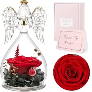 Sunia Preserved Flower Rose Gift for Women – Mother’s Day Birthday Gifts for Mom Wife Grandma, Glass Angel Figurines Forever Real Roses Gifts for Her Valentine Day Thanksgiving (Red)
