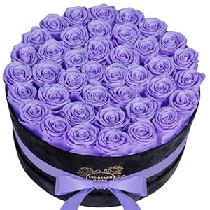 UFOREVER ROSES 40 Pieces Preserved Roses in Suede Box, Flowers for Mothers Day, Preserved Flowers Gift for Women, Purple