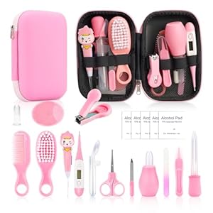 Baby Grooming Kit, Infant Safety Care Set with Hair Brush Comb Nail Clipper Nasal Aspirator,Baby Essentials Kit for Newborn Girls Boys (Pink Baby Grooming kit)