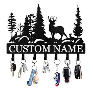 Custom Forest Deer Coat Rack Key Organizer, Personalized Metal Key Mount for Wall, Kitchen, Hallway or Doorway, Home Decor Gift