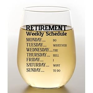 Retirement Gift for Women â Best Retirement Gifts for Mom, Teacher, Nurse, Friend or Coach â Funny Wine Glass with Weekly Schedule â Classy & Thoughtful Retired Women Present