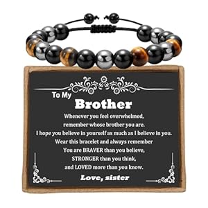 Cool Gift for Brother: “You are braver than you believe and stronger than you think”. This is the most sincere blessing to brother from sister.The brother beaded bracelet combines tiger’s eye, hematite, and obsidian, which can bring brother strong strength, faith, and good luck. Sister sent to big brother little brother gifts for Christmas birthday, unique father’s day gift for brother from sister to brother adult graduation gift