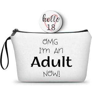 ❤BEST 18th BIRTHDAY GIFT SET:This cute gifts combination includes a makeup bag and a small mirror.This is a perfect birthday gifts for sister from sister. The cosmetic pouch has a handle and is printed with the words “OMG I’M AN ADULT NOW!”on both sides.