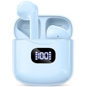 Wireless Earbuds Bluetooth 5.3 Headphones, 40Hrs Playback Stereo Ear Buds with LED Display Charging Case IPX7 Waterproof in-Ear Earphones with Mic for Phone Tablet Laptop Sports, Blue