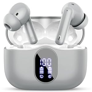 50 Hrs Playtime and Dual Power Display: With type-C quick charge, it only takes 2hrs to charge the case. The true wireless earbuds can be automatically charged in the case, and the earbuds provide up to 8-10 hrs of music time, while the portable charging case can extend it to 50 hrs. The bluetooth earbuds feature a dual LED digital display that provides real-time battery status. (NOTE: Please fully charge it for the first use. If used for calls, the earbuds only lasts 3-4 hrs.)