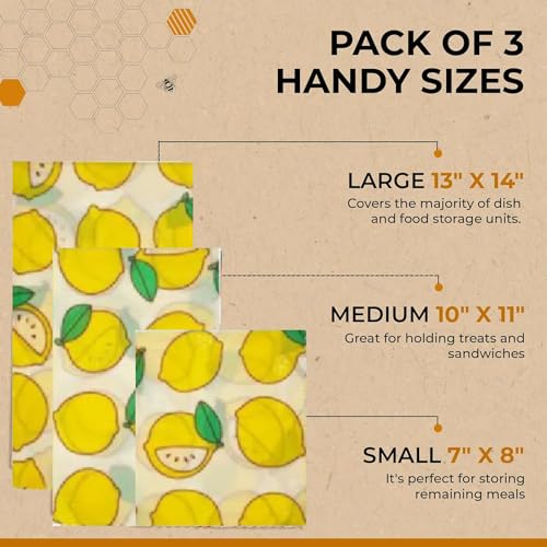 PURELY ORGANIC MATERIALS: Nacterra’s beeswax wraps are made from premium organic beeswax, natural jojoba oil, and tree resin. This 10-pack includes 3 different sizes, offering an eco-friendly, biodegradable, and sustainable alternative to single-use plastics and foils.