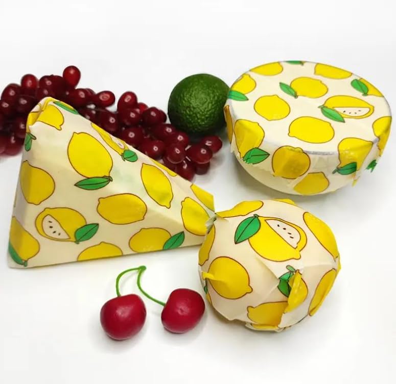 10 Pack Bees Wax Wraps Reusable, Organic Beeswax Wraps for Food, Eco-friendly Beeswax Food Wrap for Bread. Bowl Cover and Produce, Beeswax Sandwich Wraps – 3L, 3M, 4S, Lemon Pattern
