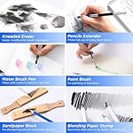 High Quality Drawing Pencils Set: Our drawing kit not only includes durable art pencils and colored pencils designed for precision and smooth shading, but also includes extra drawing tools: 3 blending paper stumps, 1 marker, 1 pencils extender, 1 3-color sketch pad, 1 coloring pad, 1 drawing tutorial, 1 water brush pen, 1 paint brush, 1 vinyl eraser, 1 kneaded eraser, 1 sandpaper block, 1 double hole sharpener, 25 paper clips, 2 binder clips, 1 sponge, 1 travel case. This art set enhances your sketching experience, whether for fine detail or broader strokes