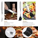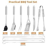 【Premium Materials】Crafted from high-quality professional-grade stainless steel, these barbecue accessories are durable, rust-resistant, and heat-resistant. The handles are designed with thickened heat-resistant material for comfort and protection against heat. Each tool is equipped with a convenient hanging loop for easy storage on the grill or wall.