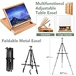 【Multifunctional Wooden Easel & Foldable Metal Easel】: The multifunctional table easel is made of premium wood, solid and can be use for a long time. It can adjustable angleis, at the same time storage goods well. The metal easel is adjustable and lightweight, never indoor & outdoor you can stimulate your imagination without limit.