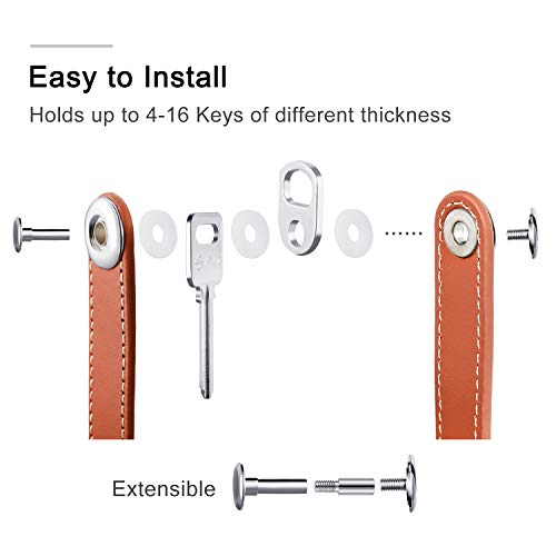 2 Sets Leather Key Organizer Compact Folding Pocket Key Holder up to 16 for Mens Father’s Day Gift(Black, Brown)