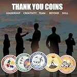 Thank You Coins Set: you will receive 30 pcs thank you coins, including 5 themes, each contains 6 pcs; They are leadership, creativity and ideas, team atmosphere, push yourself, building mastery and skill, and there are six thank you coins for each theme