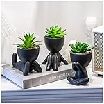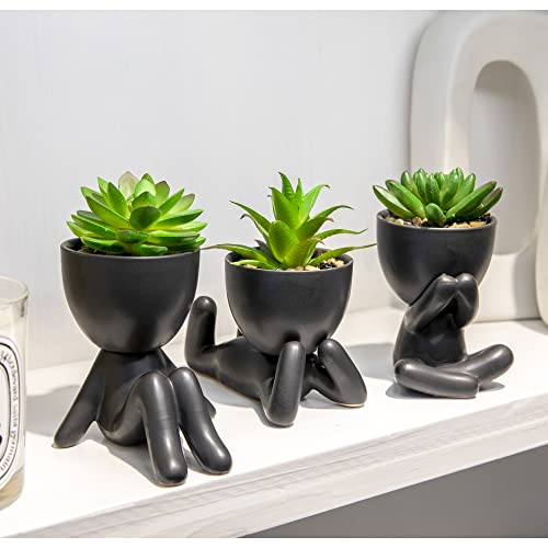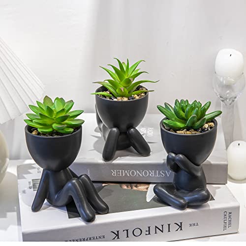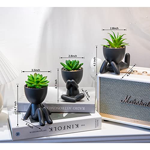 VENY TAYA 3PCS Human-Shaped Potted Artificial Plants Office Decor for Women and Men, Small Fake Plants Decor for Bedroom and Bathroom, Cute Faux Succulent Desk Decor for Office and Home, Black