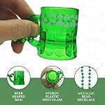 4E’s Novelty St Patricks Day Shot Glasses Bead Necklaces, Pack of 12 â Green Irish Gifts Party Favors Supplies, St Patricks Day Accessories for Adults (Transparent Green With Shamrock)