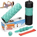 5 in1 Foam Roller Set, Trigger Point Foam Roller, Massage Roller Stick, Massage Ball, Resistance Band for Deep Muscle Massage Pilates Yoga,Fitness Exercise for Whole Body (Pure Turquoise)