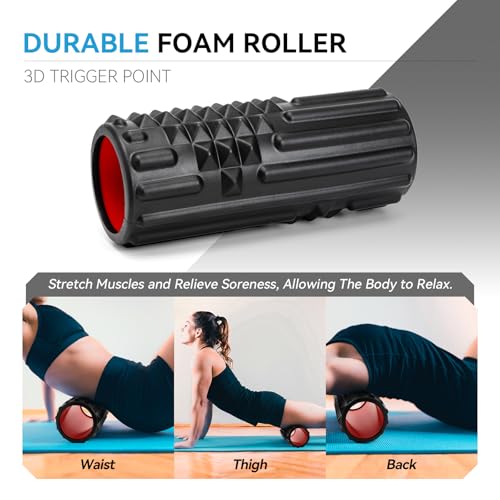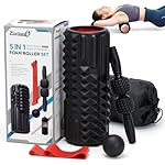 Zmarthumb 5 in 1 Foam Roller Set, High Density Fitness Exercise Foam Roller for Deep Tissue Muscle Massage, Massage Roller, Massage Ball, Resistance Band, for Whole Body(Black)