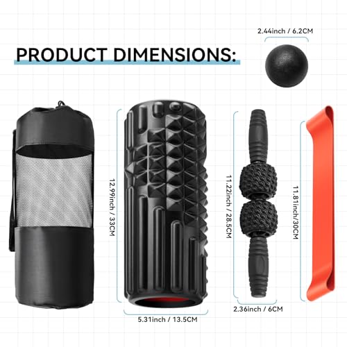 [Easy to Carry] Our foam roller set comes with a durable and portable mesh bag to storage and increase portability. You can easily take them to your home, office, yoga class, gym and more, so that you can stretch and relax before or after exercise or yoga anytime, anywhere.