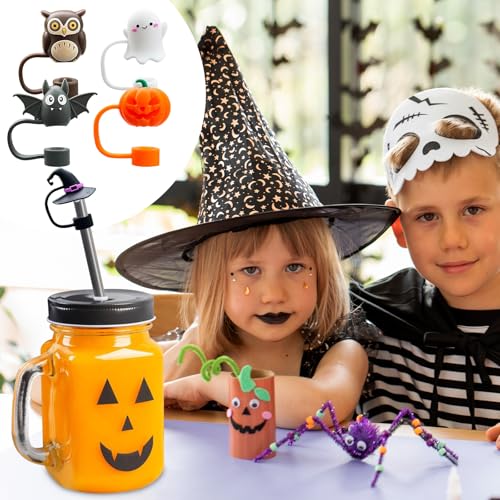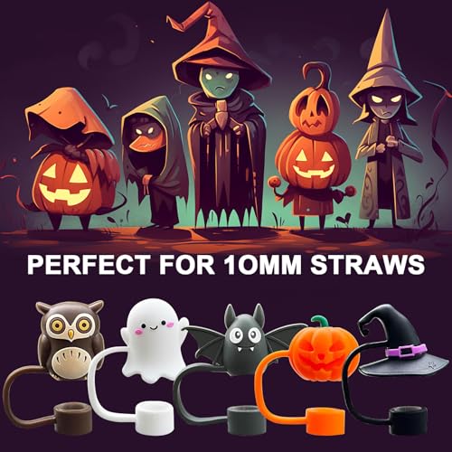 Perfect Gift: With a novel design, it has a cute Halloween style, making your straw or cup more exquisite. Suitable as a beautiful gift for friends on Halloween, birthday parties, straw parties and outdoor activities. Product includes: 5 cute halloween straw cover caps.