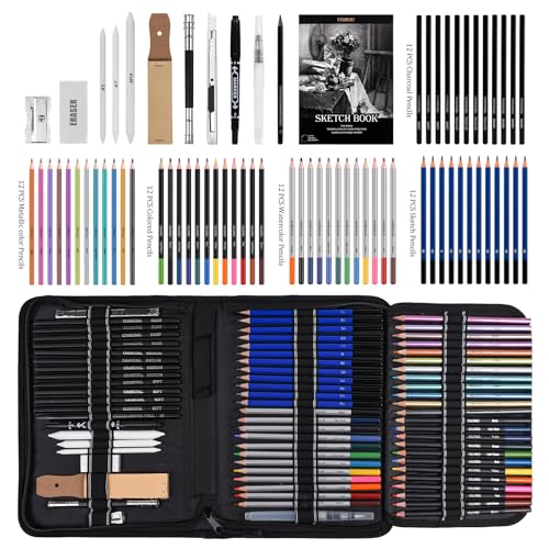 Vobou 72pcs Art Supplies Set, Colored Drawing Pencils Kit Sketching, Graphite Pencils With Convenient Case, Ideal School Art Supplies for Artists Adults Teens Beginner, Ideal for Shading, Blending