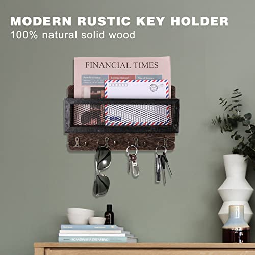 ADIIL Mail and Key Holder for Wall Decorative, Wooden Wall Mount Key Rack Hanger Organizer with 4 Double Key Hooks, Rustic Home Decor for Entryway Hallway, Brown