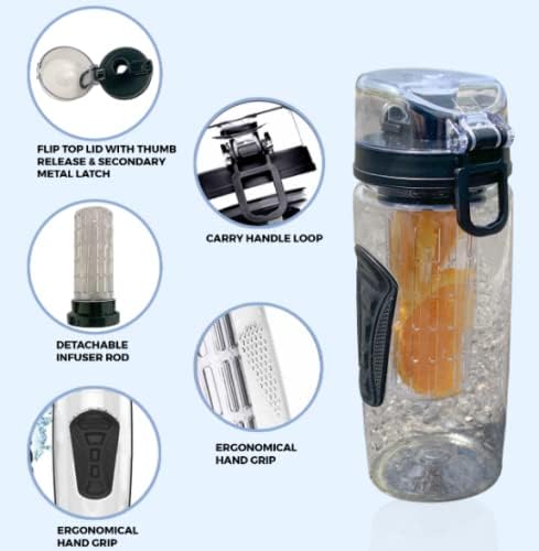 AIC Sport Fruit Infuser Water Bottle, Flip Top Lid & Dual Anti-Slip Grips, BPA Free Infuser Water Bottle,
