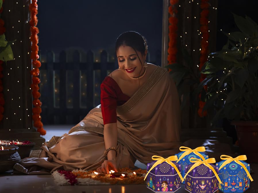 Reliable Material: Diwali party treat boxes are made of quality paper card, brightly colored and textured, perfect for gifts wrapping.