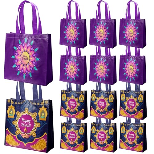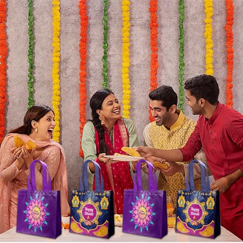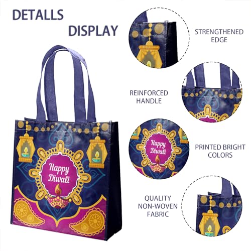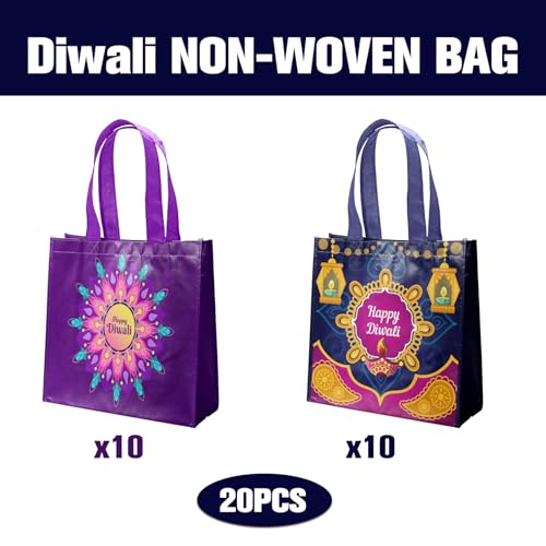 ANYMONYPF 20PCS Diwali Gift Bags Happy Diwali Non-woven Gift Bags with Handle Reusable Treat Goodie Bags Bulk for Indian Deepavali Light Festival Party Decorations Favors Bags